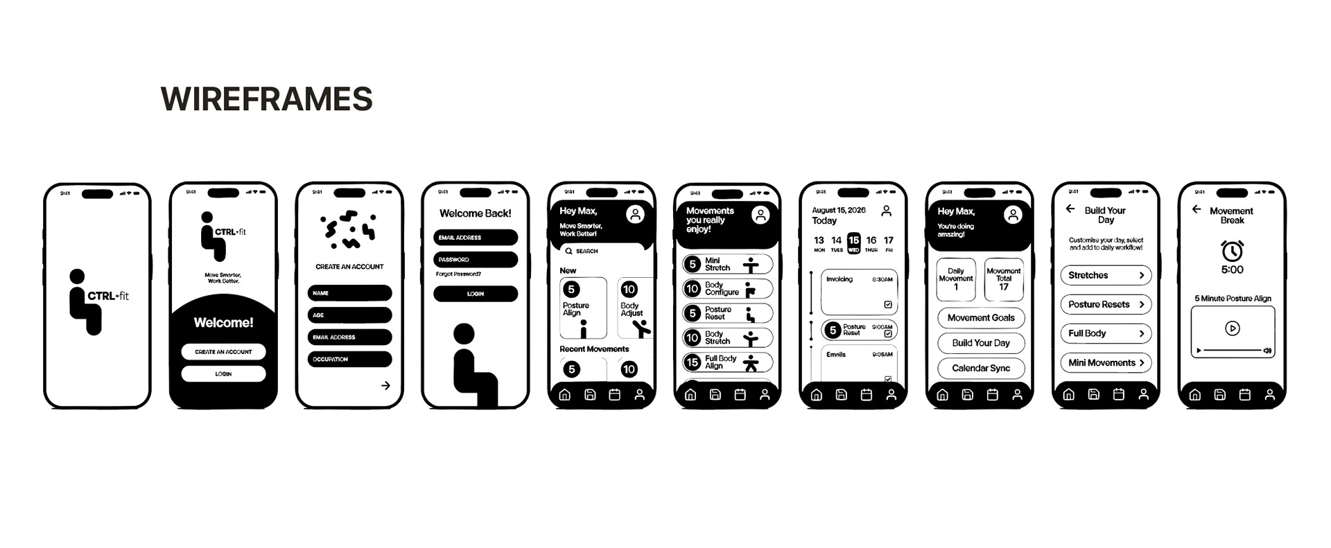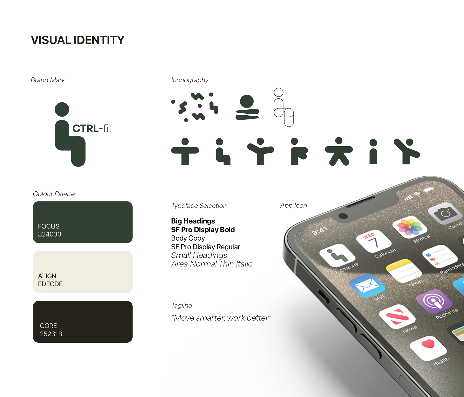 The final designs include a cohesive visual identity, high-fidelity screens, and interface components that support a seamless user experience. CTRL+Fit demonstrates how thoughtful UX/UI design, brand identity, and visual communication principles can create engaging, functional digital products that enhance user wellbeing.