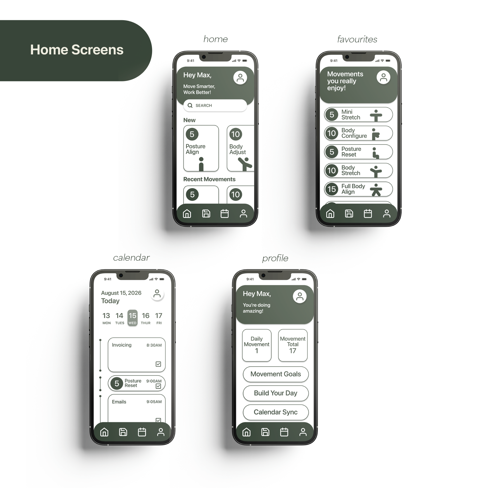I developed wireframes, user flows, and interface mockups to optimise usability and visual hierarchy. The design process involved selecting colour palettes, typography, and iconography that reflected calm, clarity, and accessibility. Iterative prototyping and feedback ensured a user-centred approach that aligned with the app’s wellness goals.
