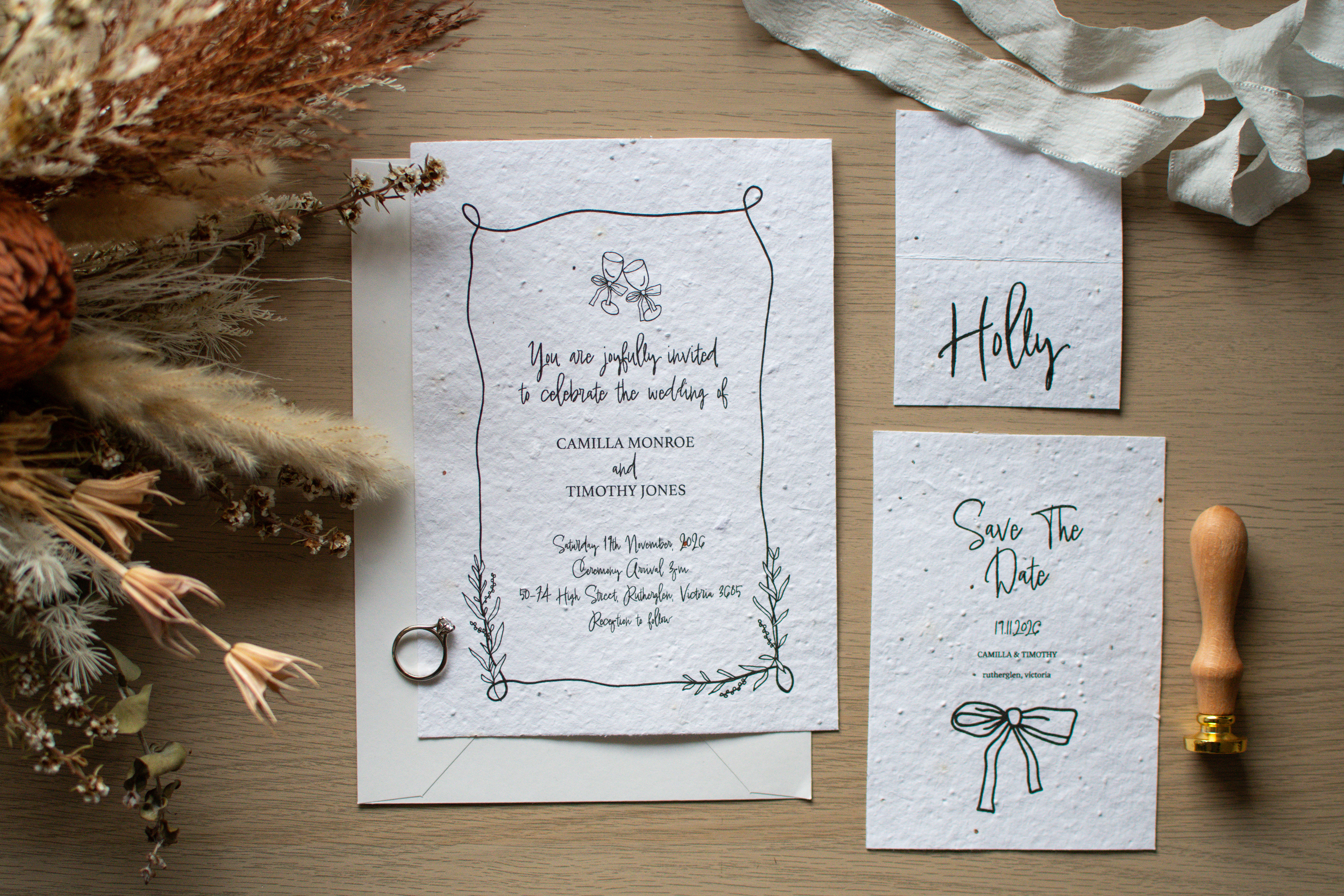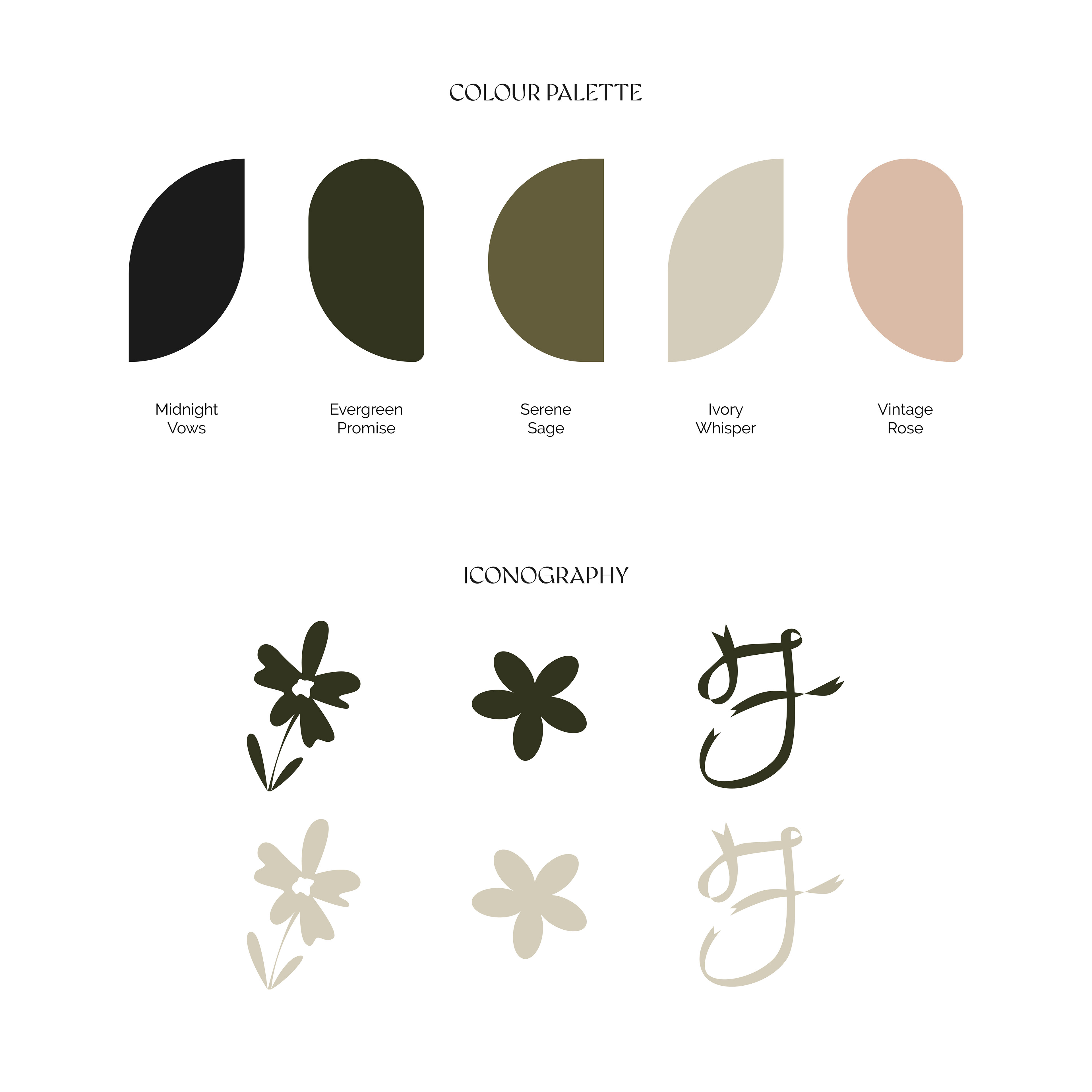 Through sketching, mood boarding, and digital iterations, I refined typography, colour schemes, and illustrative motifs to reflect the sentimental and celebratory nature of weddings. Feedback sessions helped ensure that every element of the visual identity aligned with the brand’s values and connected emotionally with the target audience.